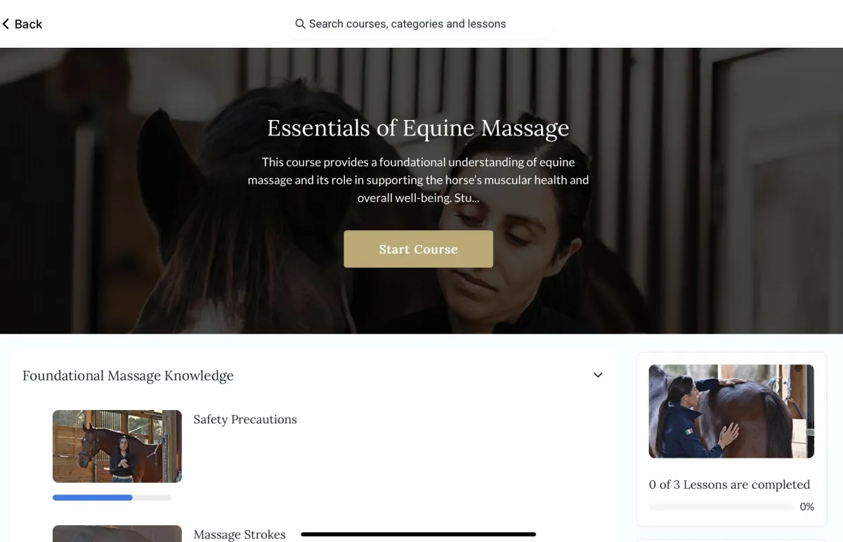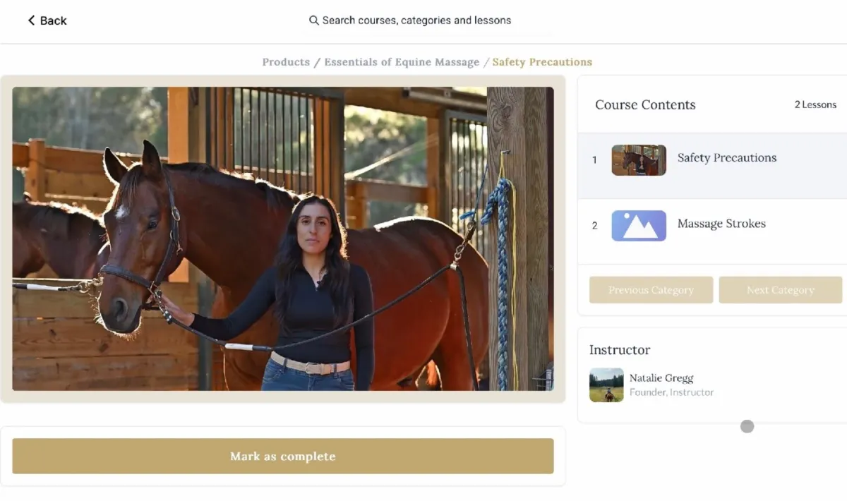 Seamlessly access hours of educational videos to learn from and use at home! You can learn with me in my member portal for just $29/month. All students who have taken a certification with me, or at Equissage California will receive a lifetime membership.
