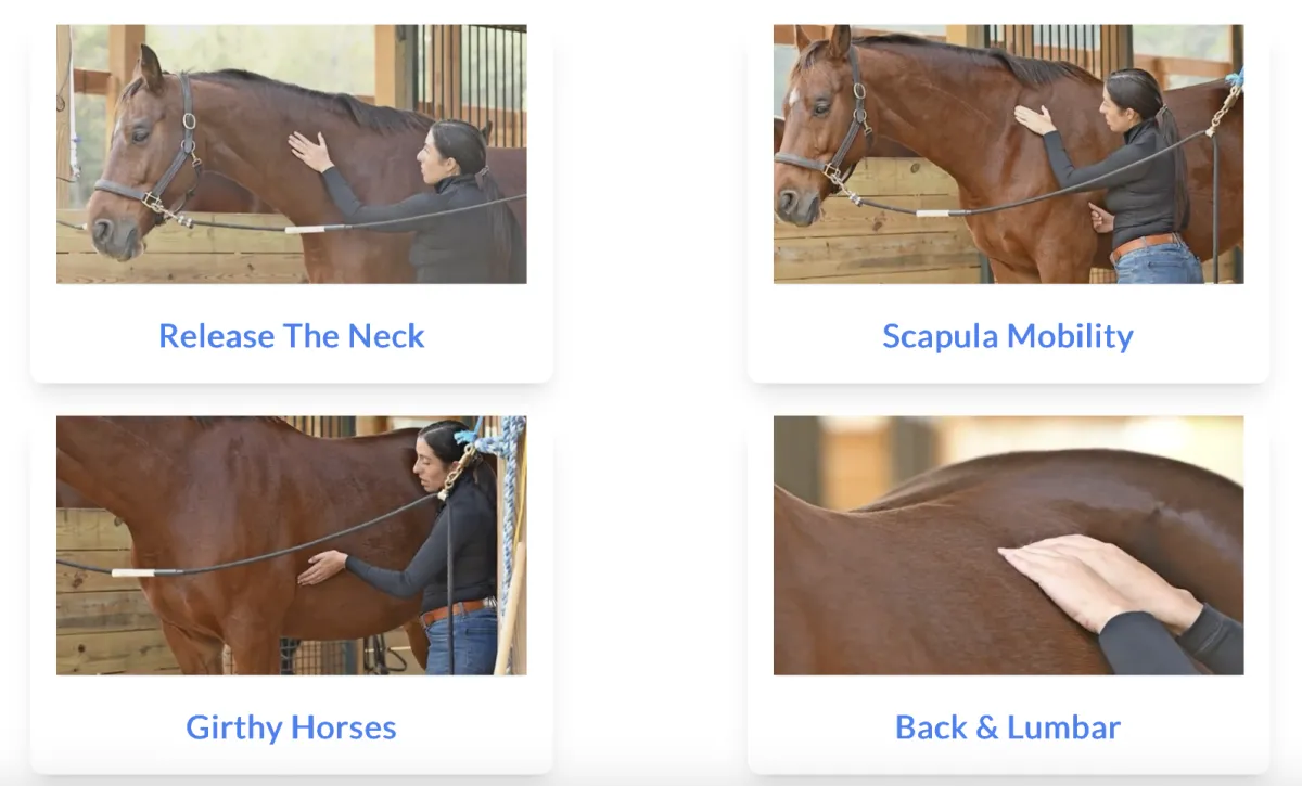 Guided routines to support specific issues (e.g. girthiness, poll pain, back soreness)
